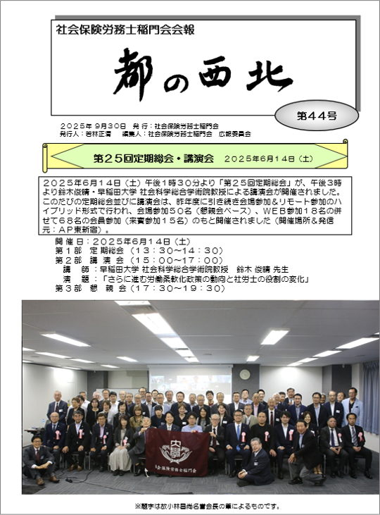 ■第25回・定期総会 (講演会:鈴木俊晴・早稲田大学 社会科学総合学術院教授 「さらに進む労働柔軟化政策の動向と社労士の役割の変化」) 2025年6月14日(土)午後1時30分~AP西新宿(ハイブリッド開催)