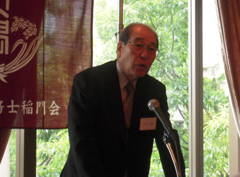 また、藤原会長から、2年目に入った母校早稲田大学における4士業合同の「提携講座」の報告等があり、続いて、小松茂樹顧問(東京会)から連合会の活動状況についての近況報告があり、蒲生秀晴副幹事長(東京会)の閉会の挨拶をもって第1部を終了しました。