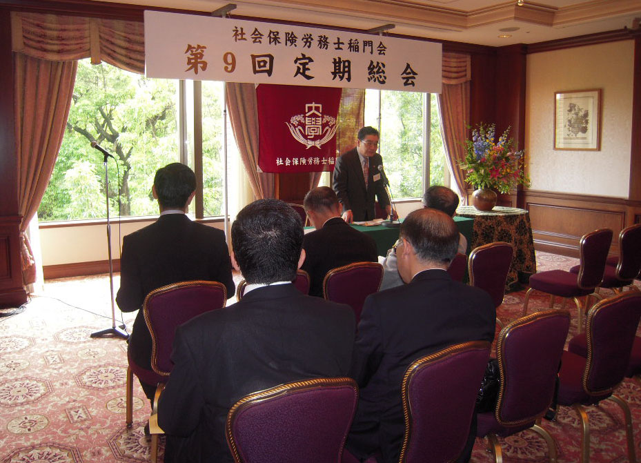 2009年6月13日(土)午後3時よりリーガロイヤルホテル東京「オーキッド」の間にて「第9回定期総会」が開催されました。2001年7月に社会保険労務士稲門会が設立され、今年で9回目の開催となりますが、29名の会員が出席し、盛況のうちの開催となりました。