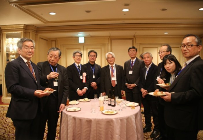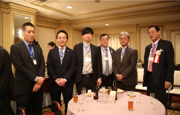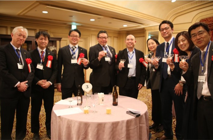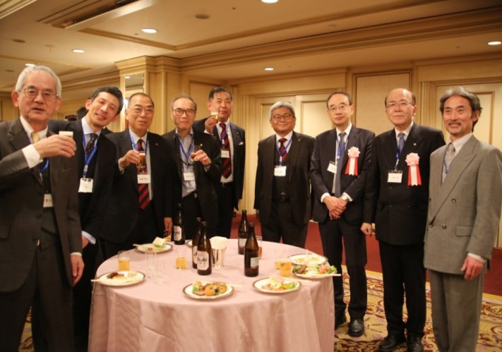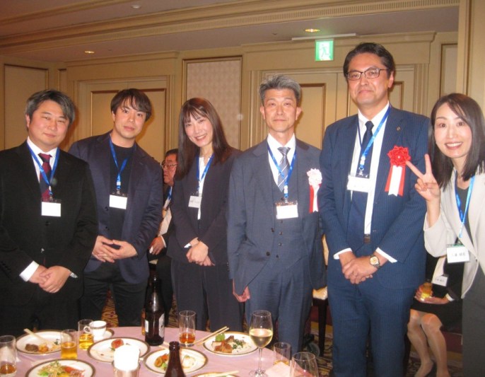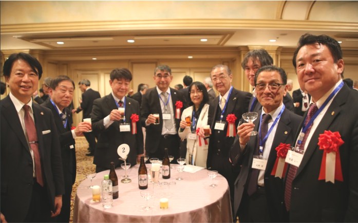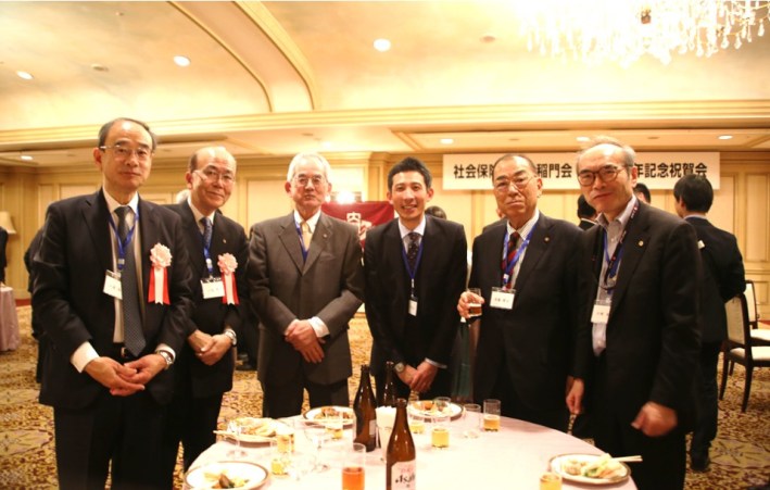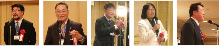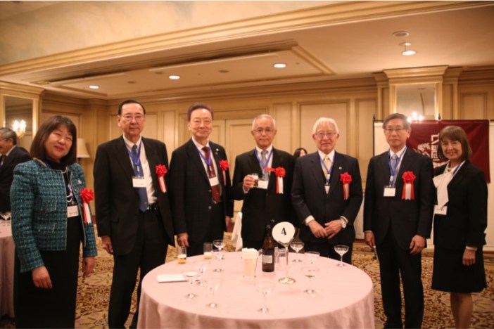 細川良・青山学院大学法学部長・法学研究科長/藤原久嗣名誉会長(乾杯の辞)/長谷川哲也・社会保険労務士三田会(慶應義塾大学)会長/諸星裕美・社会保険労務士桜友会(学習院大学)会長/味園公一・東京都社会保険労務士会会長