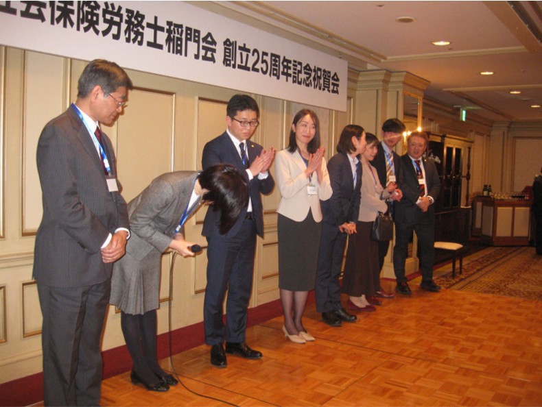 さまで大過なく成長を続けることができました。ここに改めて御礼申し上げます。この間、定期総会開催のほか、「講演と懇親の夕べ」の開催、母校・早稲田大学での校友会支援講座の企画・運営・実施と教科書の出版、稲門祭&ホームカミングデーへの年金労務相談コーナー出店、会員相互の研鑽のための勉強会の実施、会員親睦ツアーの実施などの活動を重ね、会員数も約240名となりました。この度の記念式典には90名以上の会員にご出席いただくとともに、30名以上のご来賓のご列席を賜り、盛況裡に会を催すことができましたことを、御礼方々ご報告させていただきます。