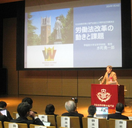 2026年1月24日(土)12:40より、早稲田大学小野記念講堂にて、社会保険労務士稲門会の「創立25周年記念式典・記念講演会」が開催されました。当会は2001年7月の発足以来、多方面から数々のご支援を賜り、お陰