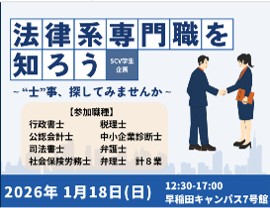法律系専門職(士業)による学生向けの合同説明会「法律系専門職を知ろう」 2026年1月18日(日) 早大キャンパス7号館