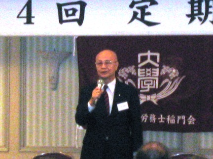第1部の定期総会は、村上芳明副幹事長の司会で開会し、最初に、早稲田大学副総長・堀口建治氏による「大学からのご挨拶」で大学の近況についての種々のお話を頂いた後、笠原正利氏を議長に選任して議事の審議が行われました。