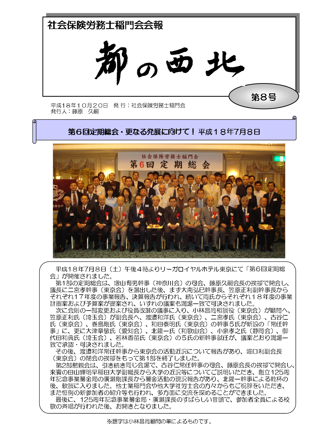 会報 第8号 (1p/全6p) ※ 会員の皆さまのお手元に届くものは単色版となります。