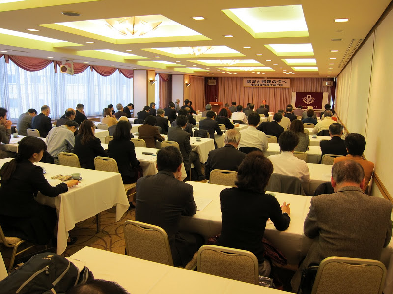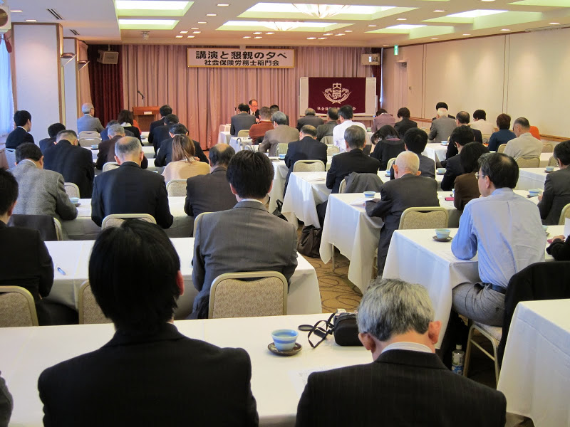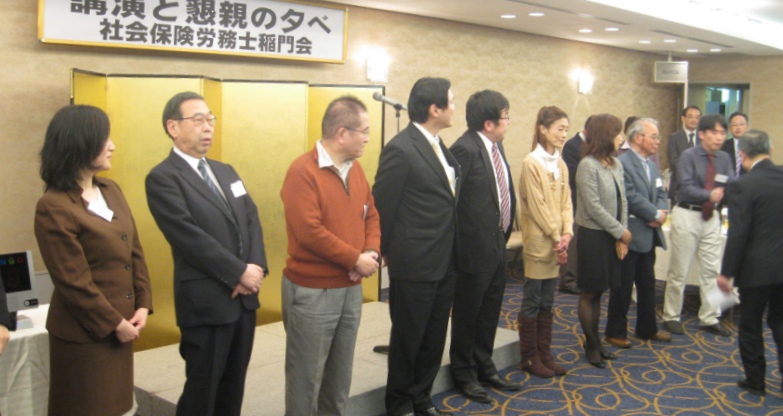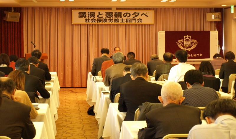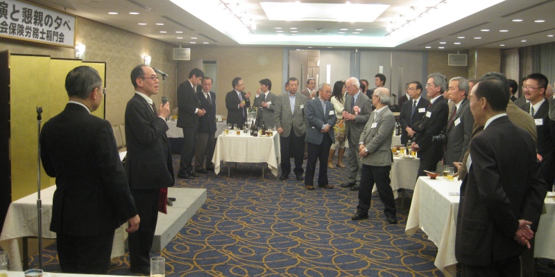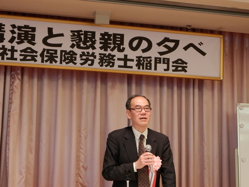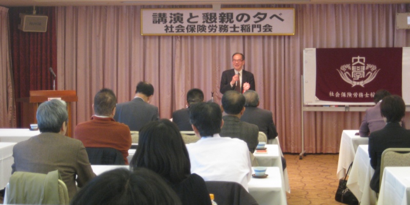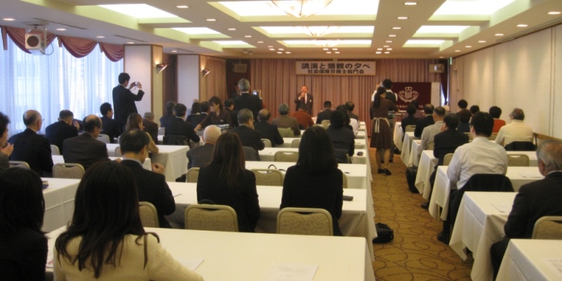 2012年12月1日(土)午後3時より「ホテル銀座ラフィナート」にて、「第12回講演と懇親の夕べ」が開催されました。この度は独立行政法人「労働政策研究・研修機構」の統括研究員である濱口桂一郎先生を講師として招聘することができ、「労働局あっせん事例の分析」というわれわれ社会保険労務士にとっても身近な講演テーマでもあったことから、初参加の会員も含め72名の会員の皆様にご出席いただき、盛況のうちの開催となりました。