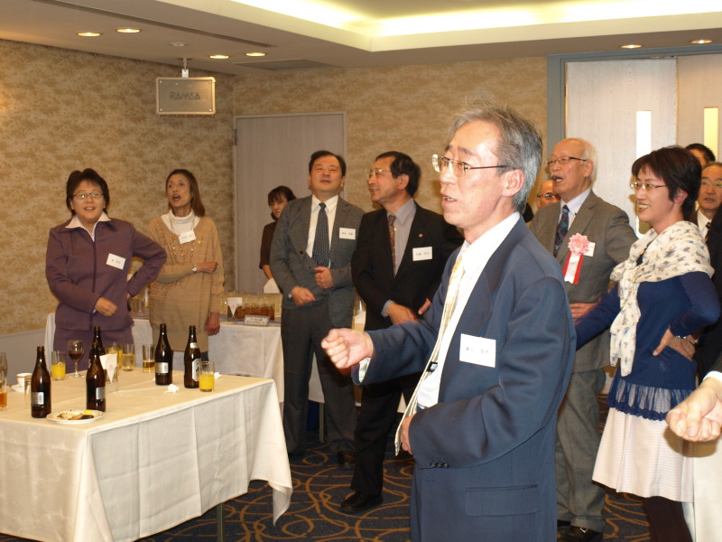 こうして楽しい時は流れ、感興醒めやらないうちに会は終了予定刻となりました。最後に、蒲生秀晴副幹事長(東京会)の指揮により全員で校歌を斉唱し、渡邉和洋副会長(東京会)の閉会の挨拶をもって会は盛況裡に終了し、中締めといたしました。