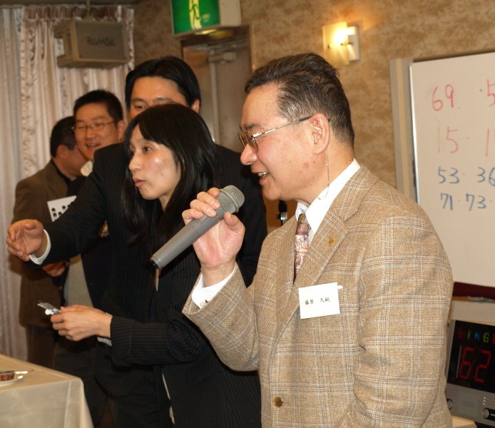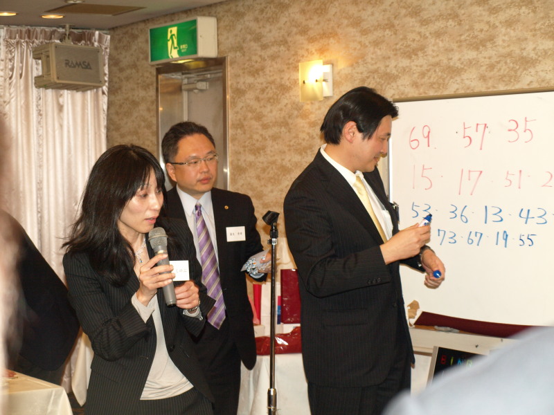 会員の皆さんの会話が会場のあちらこちらで弾むなごやかな雰囲気の中、濱口桂一郎先生からも改めてご挨拶を賜るとともに、会の中盤ではビンゴゲーム大会が行われて会は一気に盛り上がりの度合いを高め、新入会員・初参加会員の方々から自己紹介のご挨拶をいただいて新たな親睦の輪も広がりました。