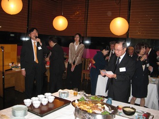 第2部・懇親の部(17時20分~19時)は、会場を「龍名館本館」に移し、佐野正治幹事(東京会)の司会のもと、村上芳明会長(東京会)の開会の挨拶、若林正清副会長(三重会)の乾杯の音頭でスタートしました。会員同士で多い語らって懇親を深めるとともに、ビンゴゲームなどで盛り上がり、さらには、連合会の活動報告、当会の各委員会の活動報告やプロジェクトの進捗状況の報告、新入会員の紹介などが行なわれました。最後に蒲生秀晴常任幹事(東京会)の音頭のもと全員で母校校歌を斉唱し、渡邉和洋副会長(東京会)の閉会の辞により定刻をもって中締めとしましたが、その後も同会場にて20時まで歓談の華が咲き、盛会の裡にお開きとなりました。