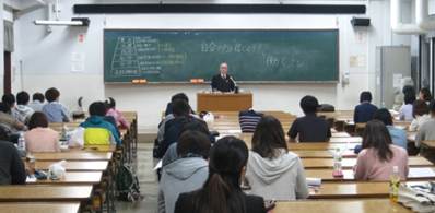 2008年度の最初の年の講座は、通期全28コマ(内、当会の担当は7コマ)、登録学生枠30名でスタートしました。2009年度からは、前期と後期に分けて学生を募集し(前後期各15コマ。内、当会の担当は前後期計7コマ)、募集枠は50名に拡大され、さらに後期は前期の好評を受け、100名へと拡大され実施されました。2010年度の講座は、前後期各15コマ、全30コマで、それぞれの募集枠100名で実施されましたが(当会は前後期計8コマを担当)、学生の当講座に対する人気は高く、前後期各220名から300名前後の聴講応募者があり、最終的には、前期114名、後期106名で実施されました。
